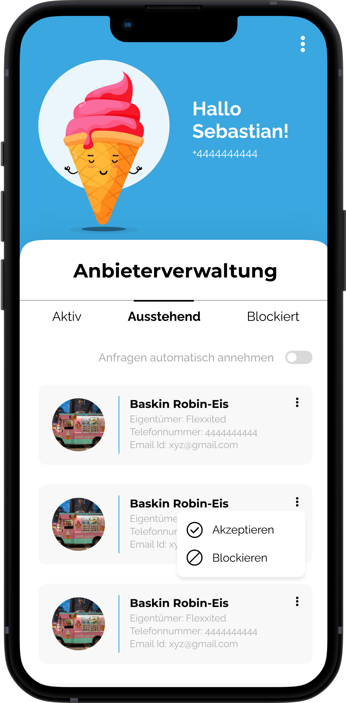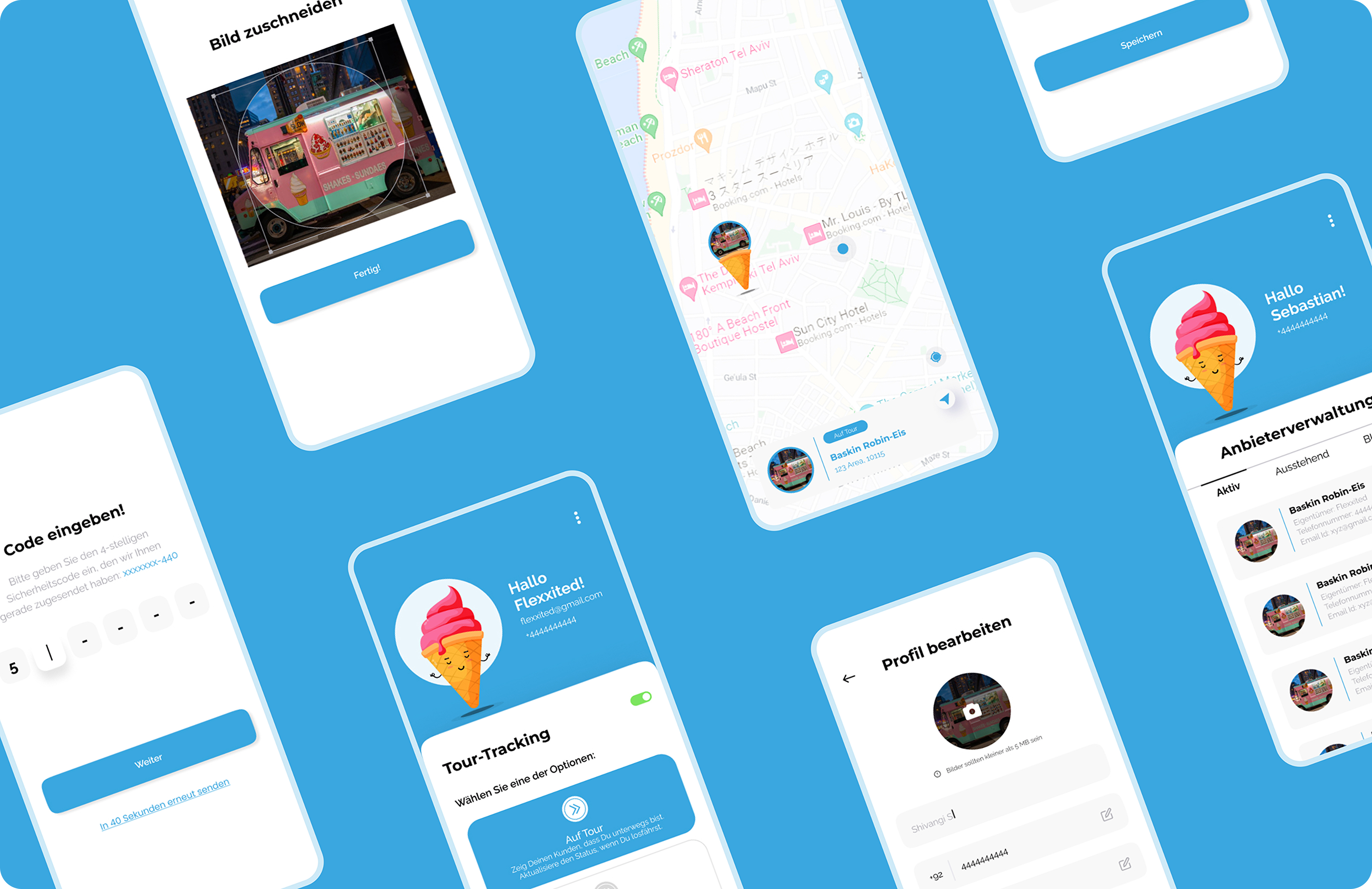Die Eis is a mobile application designed to help users track ice cream trucks in real time. The platform connects customers, vendors, and administrators, offering a seamless experience for those seeking delicious treats on the go. Customers can view the locations of ice cream trucks, vendors can update their availability status, and admins can manage both customers and vendors efficiently.