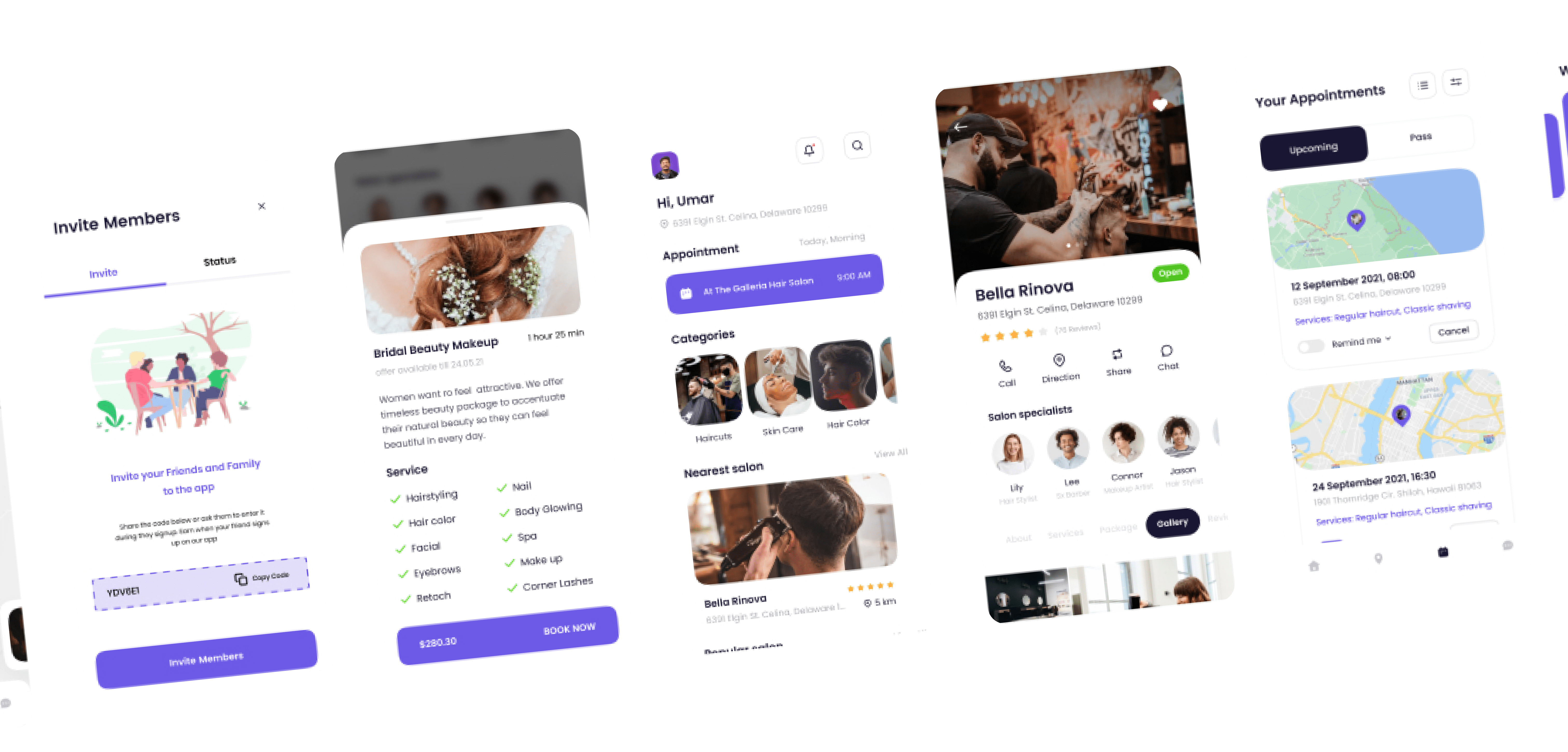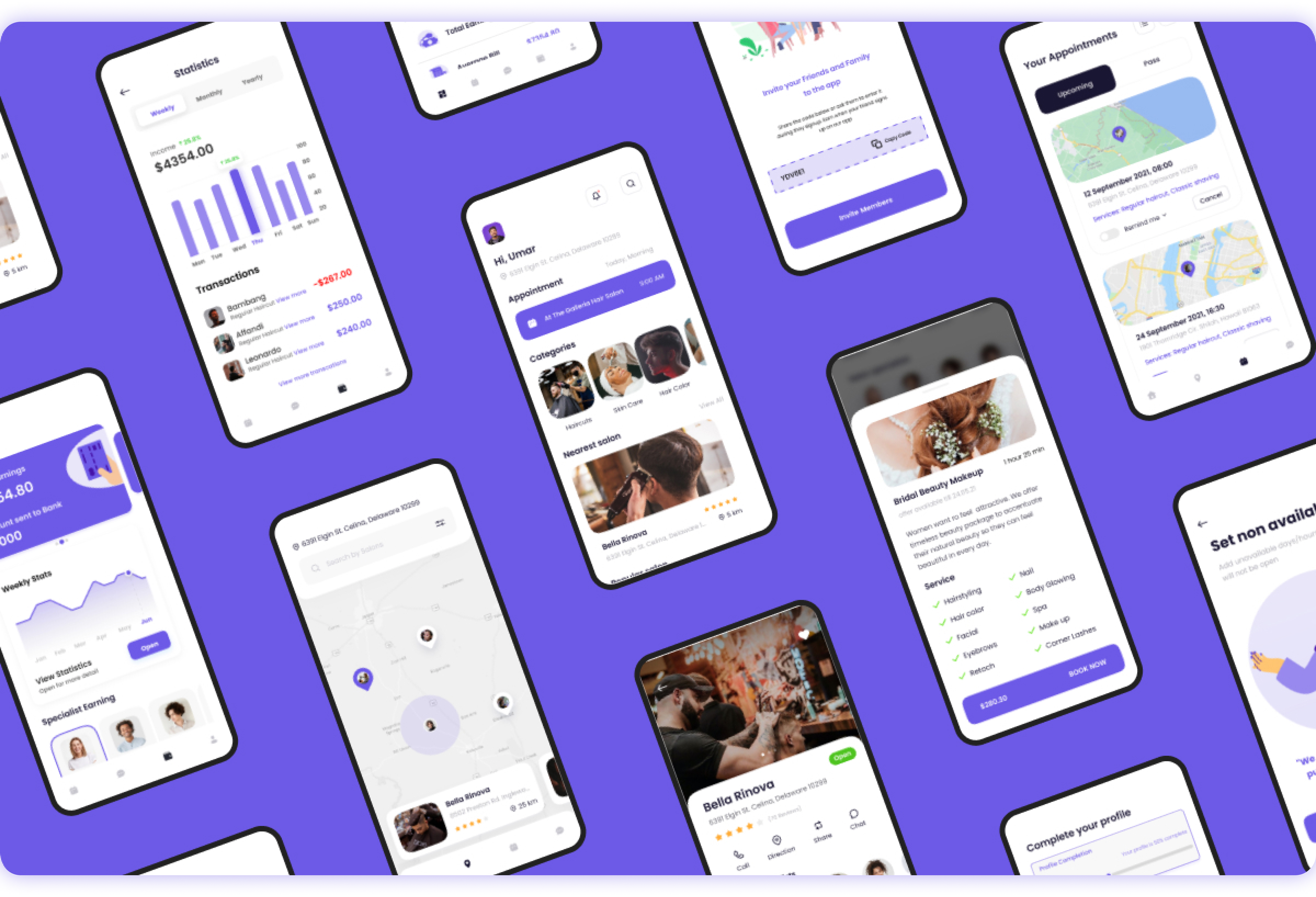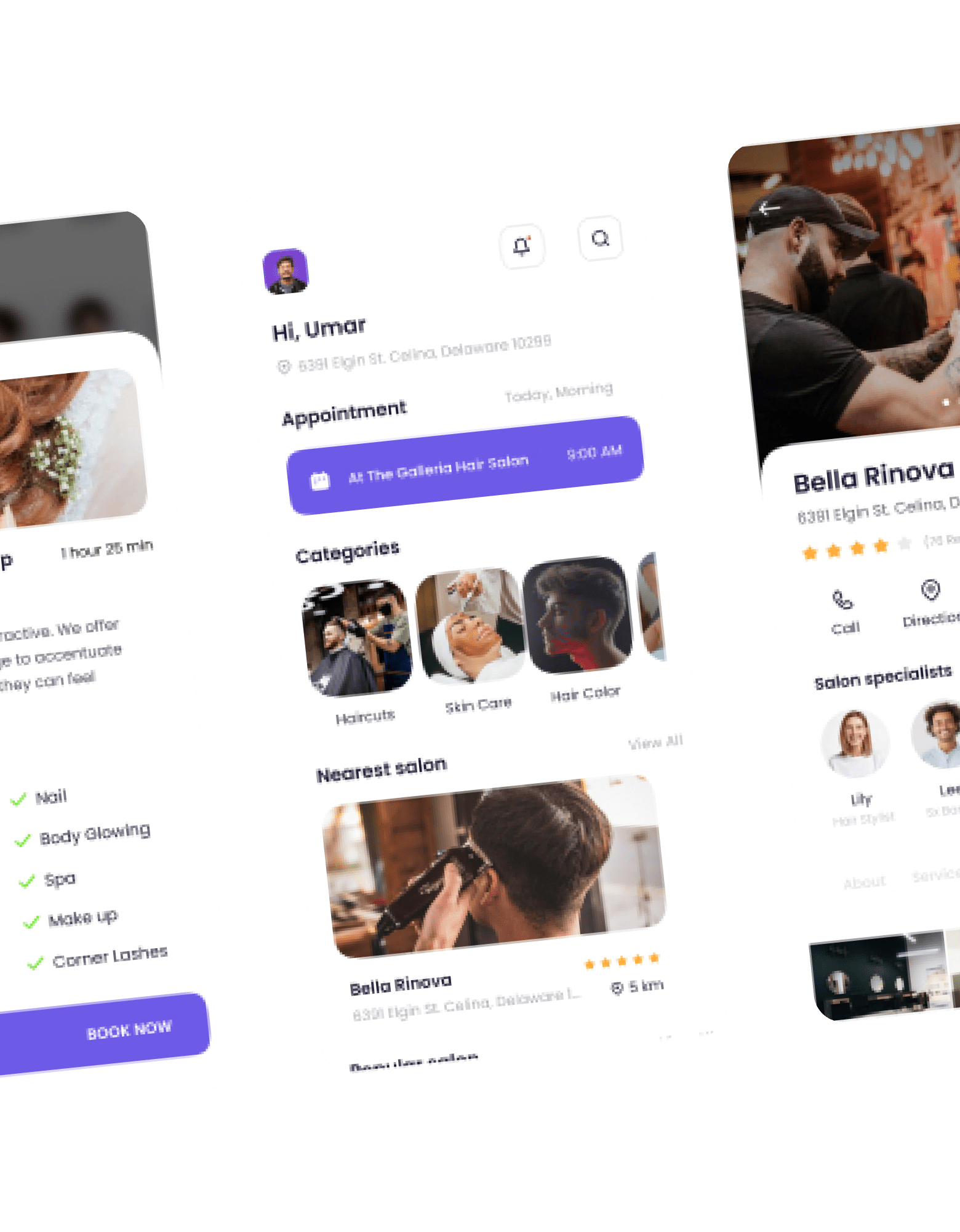 The user interface is designed to be intuitive and empowering. Customers can easily discover nearby salons with a quick glance. Detailed listings showcase services, stylists, and customer reviews, allowing users to make informed decisions. Booking appointments is a breeze, with a clear process to select desired dates, times, and stylists, all within the app.