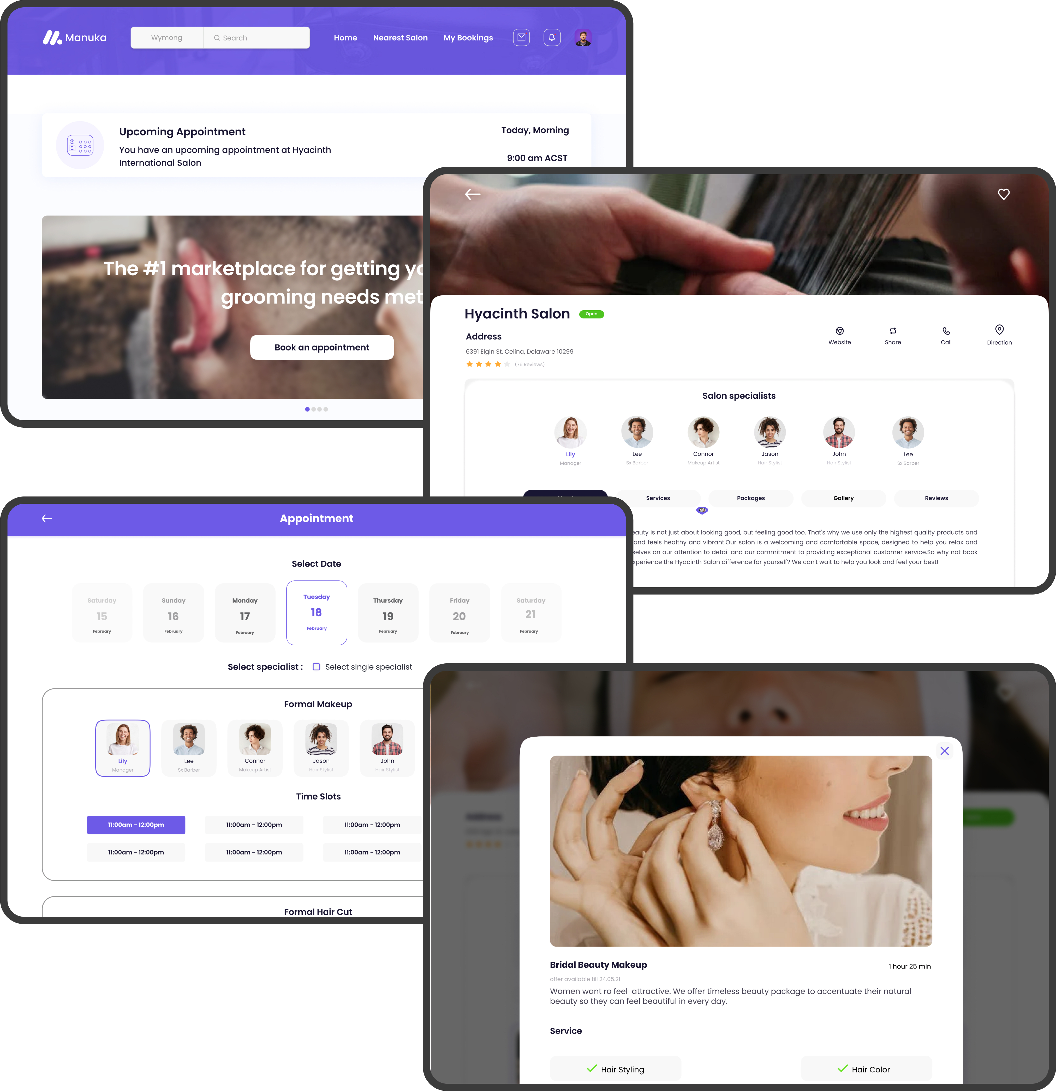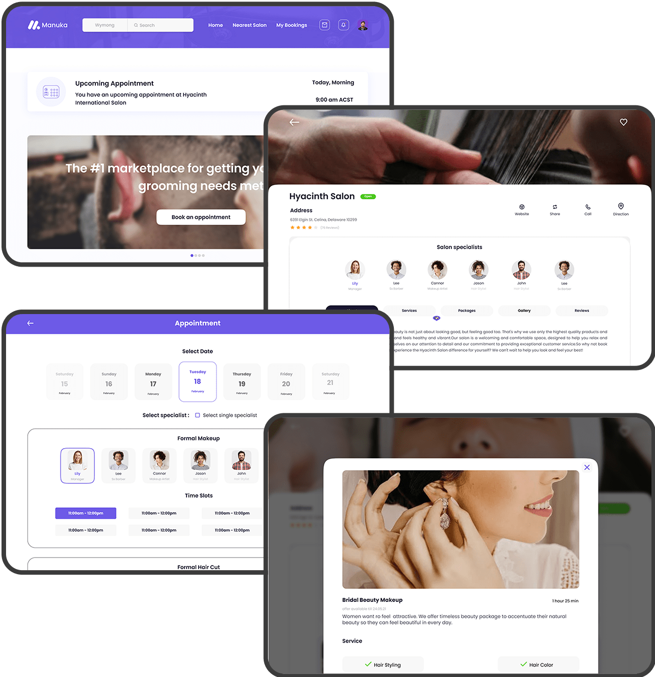 Manuka Services, a web and mobile app, simplifies salon appointment booking. Customers browse nearby salons, stylist profiles, and services, booking appointments effortlessly. Salon owners can create detailed profiles showcasing services, pricing, and stunning photos. They can also manage appointments and schedules.