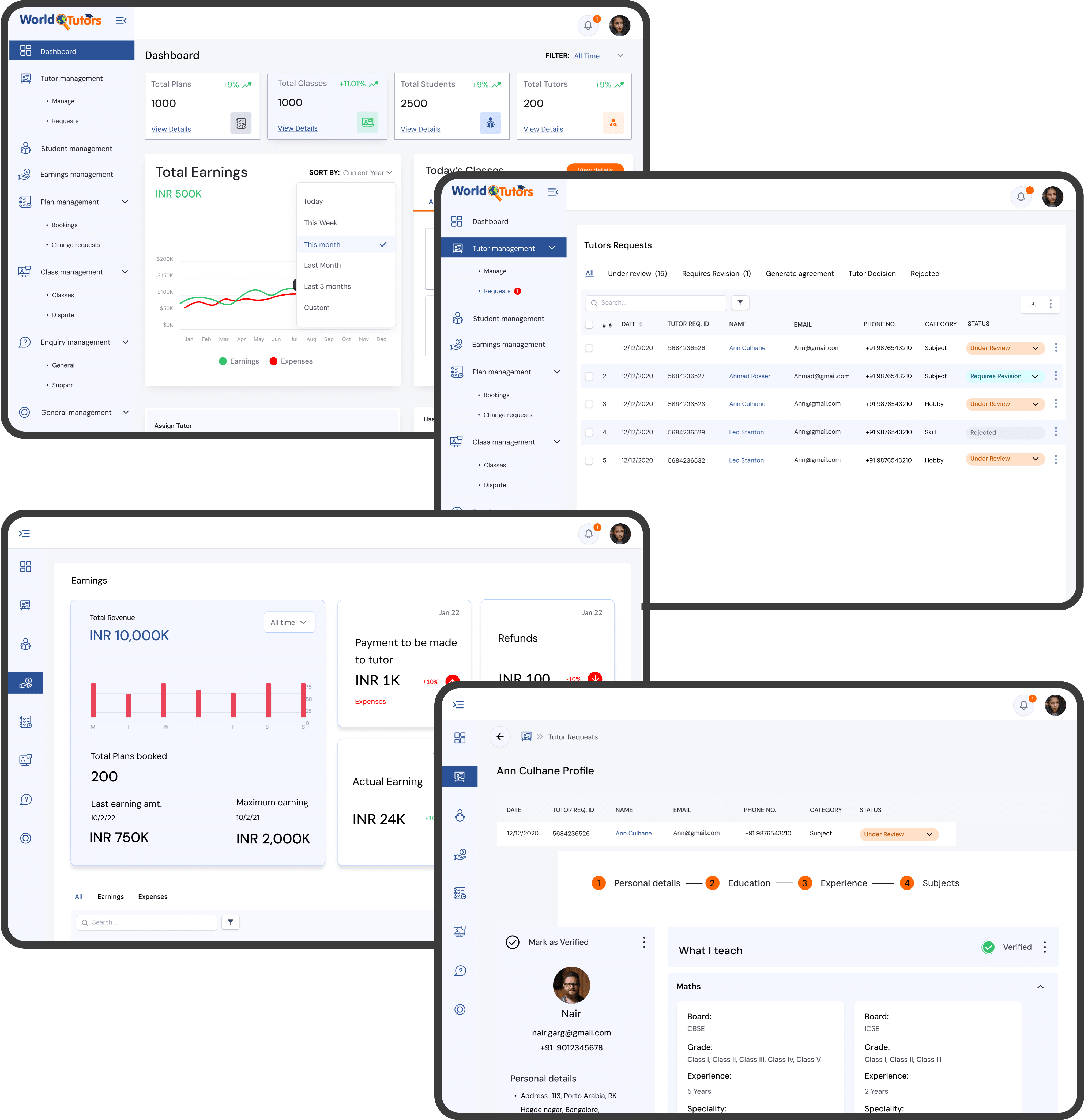 The WorldOTutor admin platform provides comprehensive system management. Here, you can monitor user activity (students and tutors), manage content like subject categories and languages, and leverage analytics to understand user trends. Additionally, the admin panel allows for secure management of user accounts and the overall platform health.